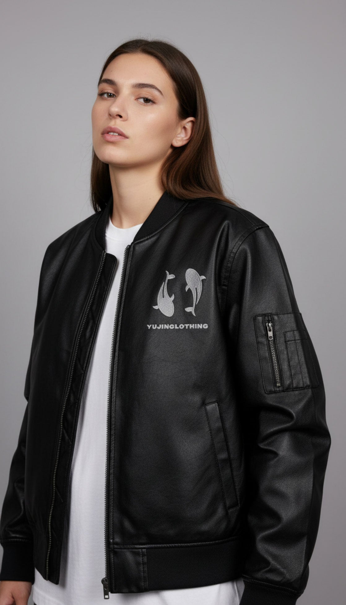 If there’s an item that never goes out of style, it’s a leather jacket. Made of 100% PU leather, this classic piece will complement casual, chic, or sporty outfits. The detailed embroidery adds a unique twist to the classic bomber jacket, resulting in a truly distinct fashion item that'll become a favorite in your wardrobe.